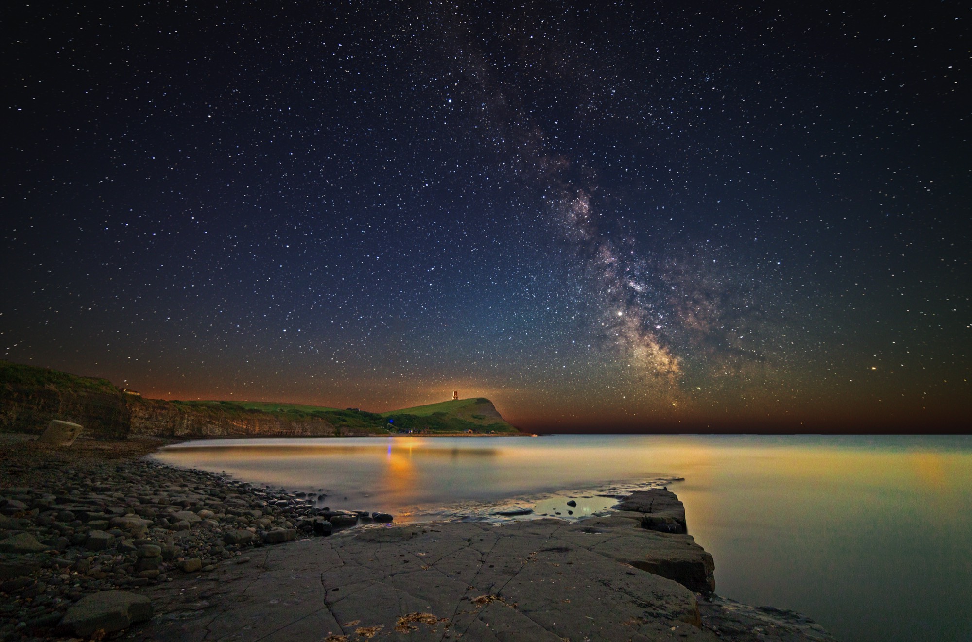 Reflection's of the Milky Way & Jupiter on the sea at St. Aldhelms Head.