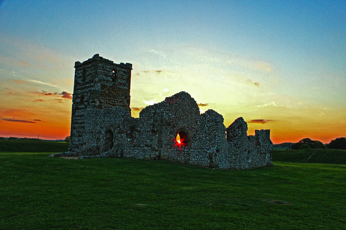 Sun set through arch window Knowlton Church & Earth works