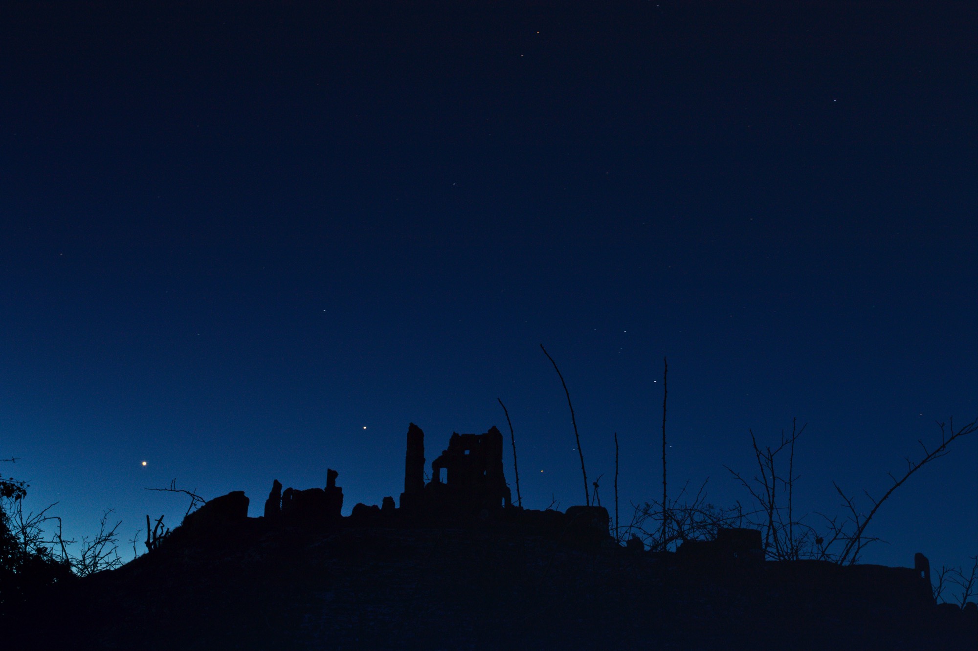 Venus and Jupiter with silhouette of Corfe Castle.