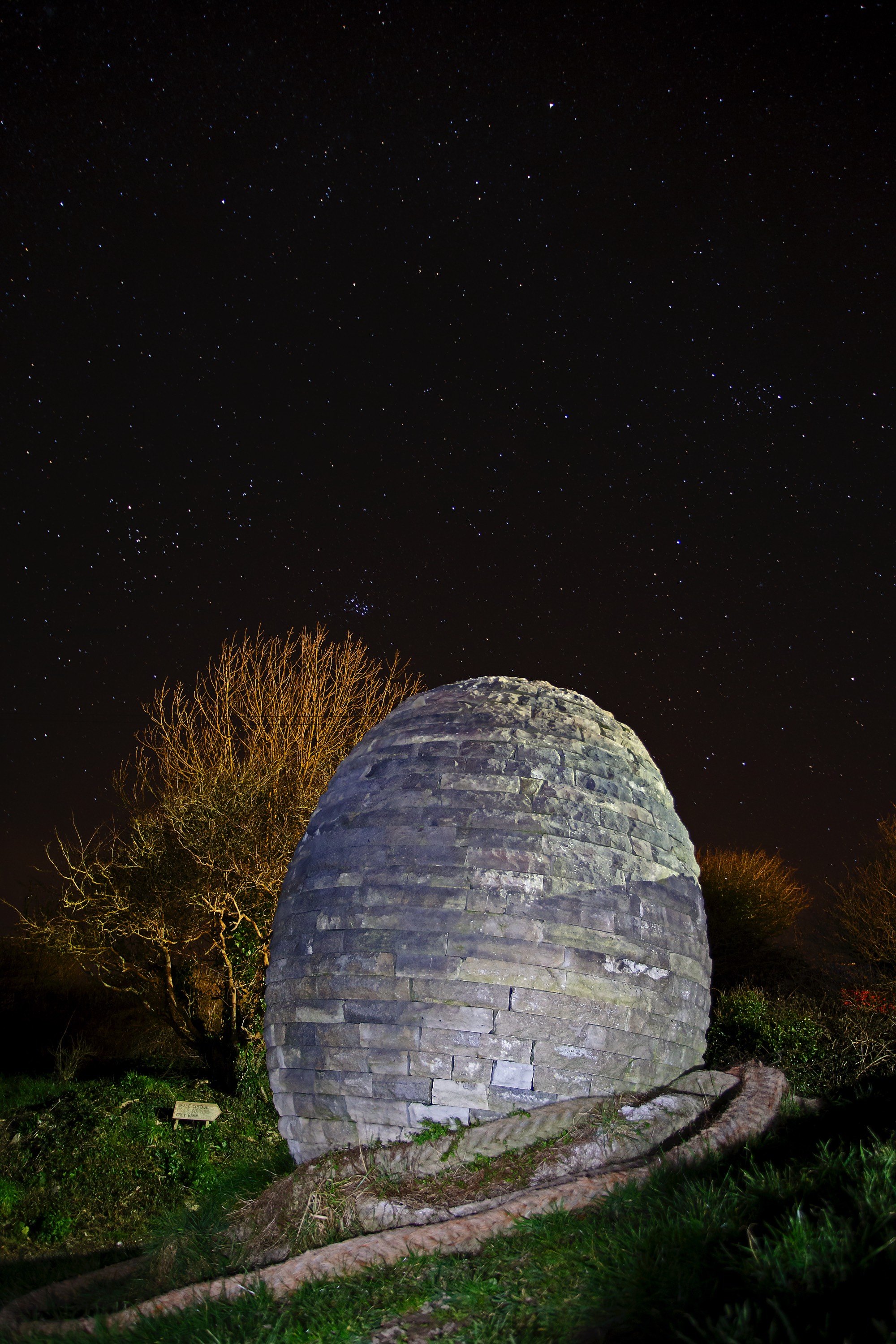 Dry stone dinosaur egg Worth Matravers with Taurus above.